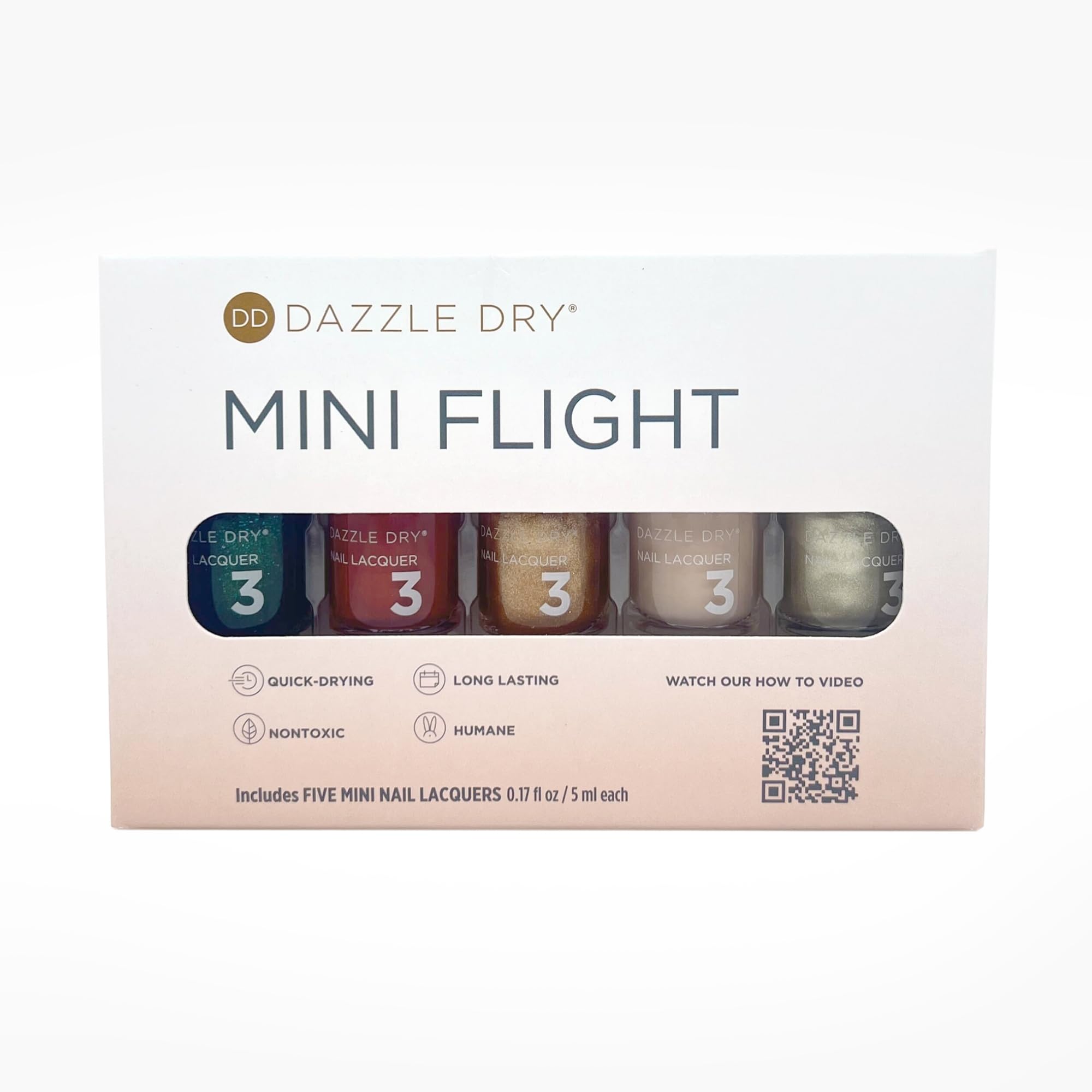 - DAZZLE DRY AFTERPARTY MINI FLIGHT: Be the star of the afterparty with these gorgeous hues. Everything you love from our nail lacquers in mini bottles (0.17 fl oz / 5 ml ea). Our lacquers dry in seconds, helping to minimize mistakes. When used as a system, our unique formula offers longer-lasting, salon-quality results with no chipping, peeling or fading for 7+ days.